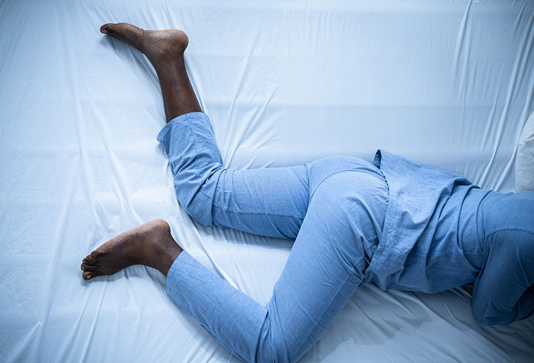 RLS may present with symptoms of burning, aching, pain, cramping, tingling, creepy crawly feelings predominantly in the legs at night time.